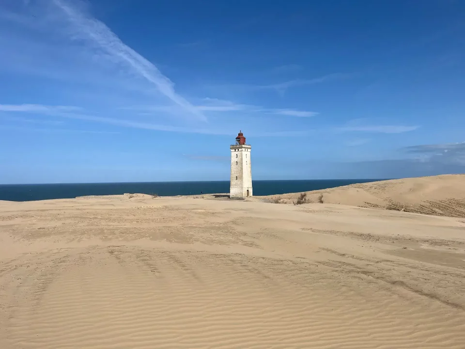 Hier sind auch noch Reste vom Atlantikwall mit seinen Bunkern am Strand sichtbar und zu erkunden. Zudem besuchen wir den alte Leuchtturm Rubjerg Knude Fry, der hoch oben auf einer riesigen Sanddüne stehend im Jahr 2019 aufgrund schrumpfender Entfernung zur abschmelzenden Düne/Steilküste um 70 m landeinwärts verschoben werden mußte.